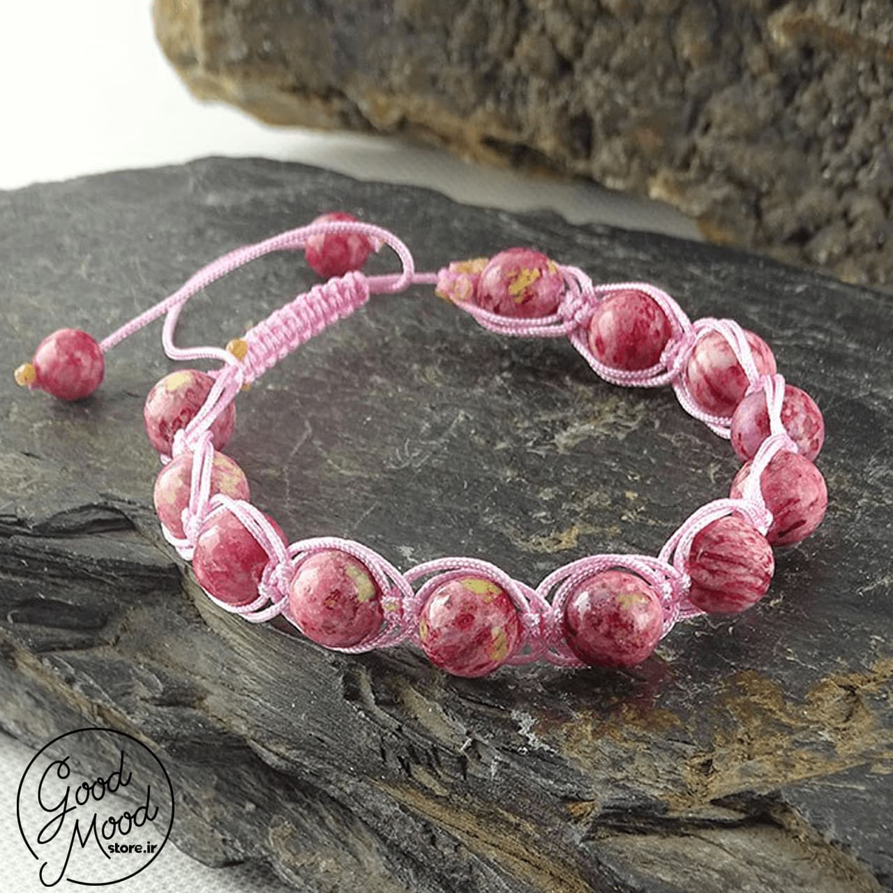دستبند تمام سنگ طبیعی رودونیت با طراحی اختصاصی تیم گودمود استور، یکی از خاص ترین دستبندهای موجود می باشد.